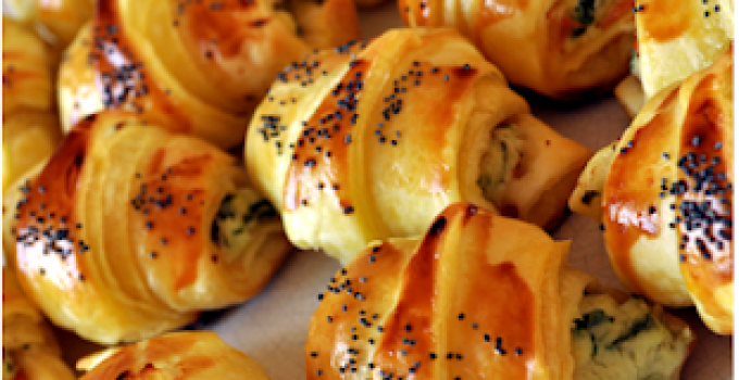 Découpez la pâte feuilletée en 16 parts. Déposez un petit bout de saumon à chaque extrémité, puis un peu de fromage frais au herbes. Poivrez si vous le souhaitez mais ne salez pas!