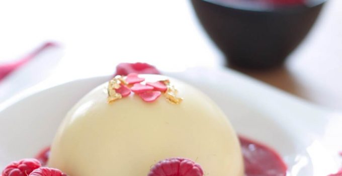 aujourd’hui je vous propose une nouvelle version que j’avais déjà évoquée lorsque j’ai publié la première ! Un dôme chocolat blanc, panacotta vanille et coeur de framboise, un bon petit dessert que vous pouvez préparer pour un diner en amoureux…par exemple demain pour la Saint Valentin 😉 ou pour tout autre occasion!