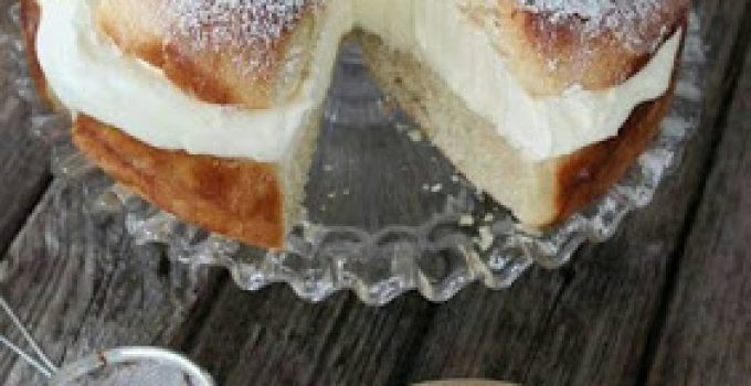 A l’aide d’une poche à douille, dresser la crème sur le disque de brioche, refermer avec l’autre disque, saupoudrer de sucre glace et réserver au frais jusqu’au moment de servir.