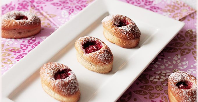 Remplir les empreintes de votre choix de pâte aux 3/4 et poser une framboise au milieu en l’enfonçant légèrement.