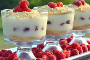 Ingrédients pour 5 verrines 250 g de framboises 200 g de Spéculoos ou petits beurre ou biscuits de votre choix 50 g de beurre fondu Crème pâtissière à la …