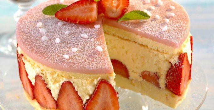 Enfoncez les morceaux de fraises dans la chantilly et terminez en posant le second rectangle de génoise.