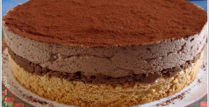 Couvrez votre moule à gâteau d’un cercle de biscuit (découpé sur mesure). Répartissez le mélange pralinoise sur le biscuit et lissez la surface. Mettez au frigo jusqu’à durcissement.