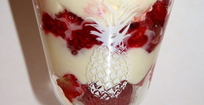 Avant de servir décorer de copeaux de chocolat blanc et de quelques framboises.